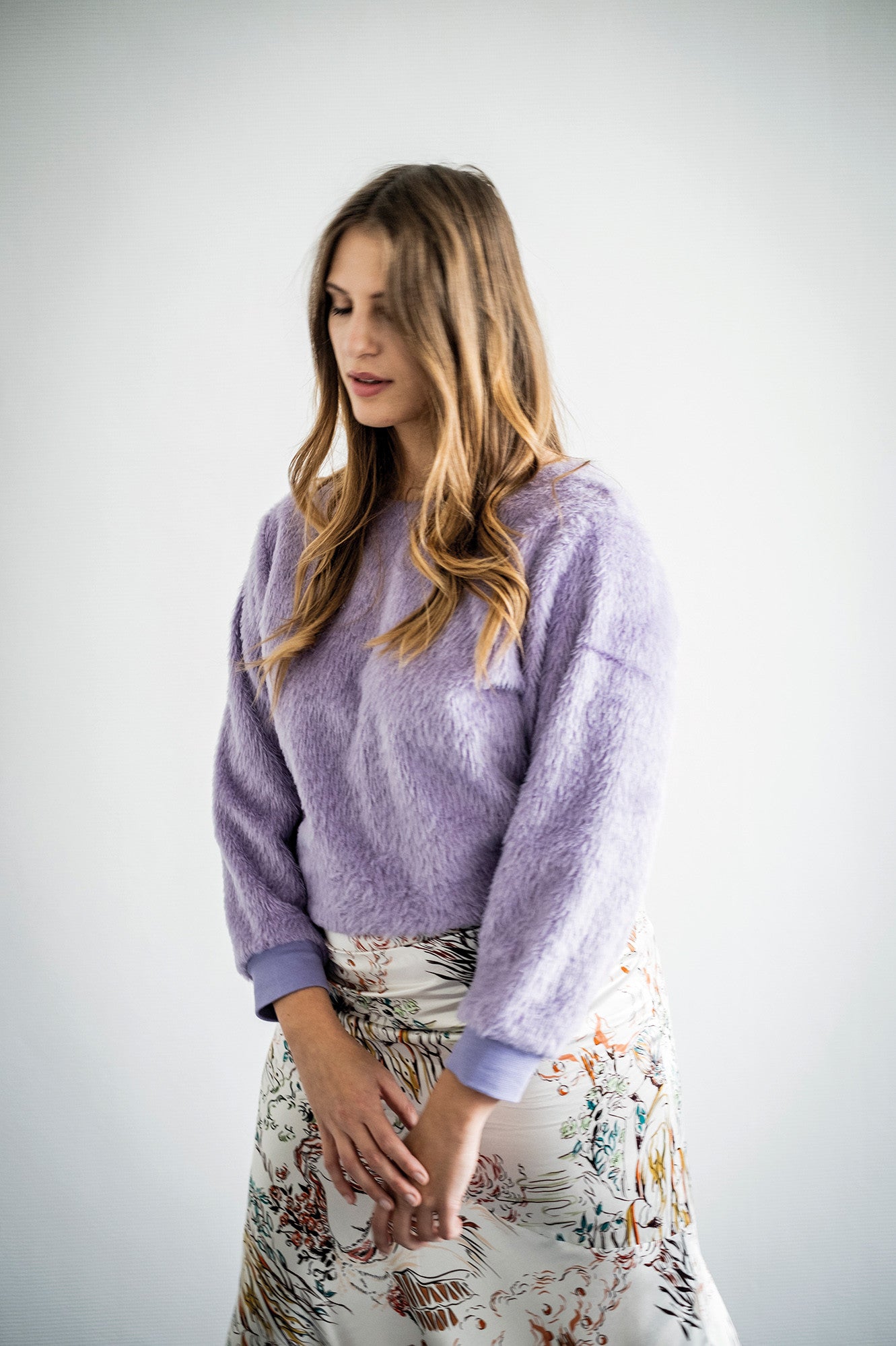 Weißt du noch, die guten alten Winter mit einer weißen Weihnacht? Alice wird dich sofort wieder daran erinnern. Diesen Pullover nähst du aus einem gemütlichen Strickstoff.