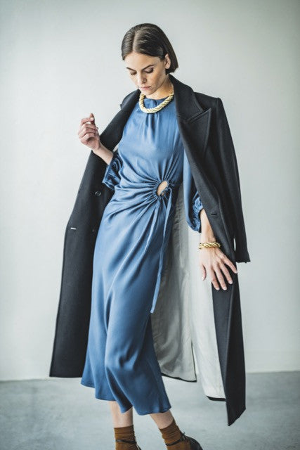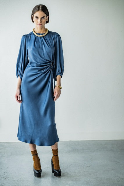 Verspielt mit Klasse: Dieses ultrafeminine Kleid erhält an einer interessanten Stelle einen Ausschnitt mit Schleifenband, das sowohl ein auffälliges Detail als auch elegante Drapierungen bietet.