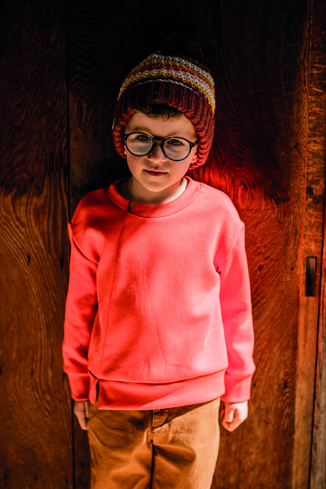 Ellis hat Mumm. Die schräge Ziernaht im Vorderteil des Sweatshirts verbindet die originellen Details im Hals- und Saumbündchen.