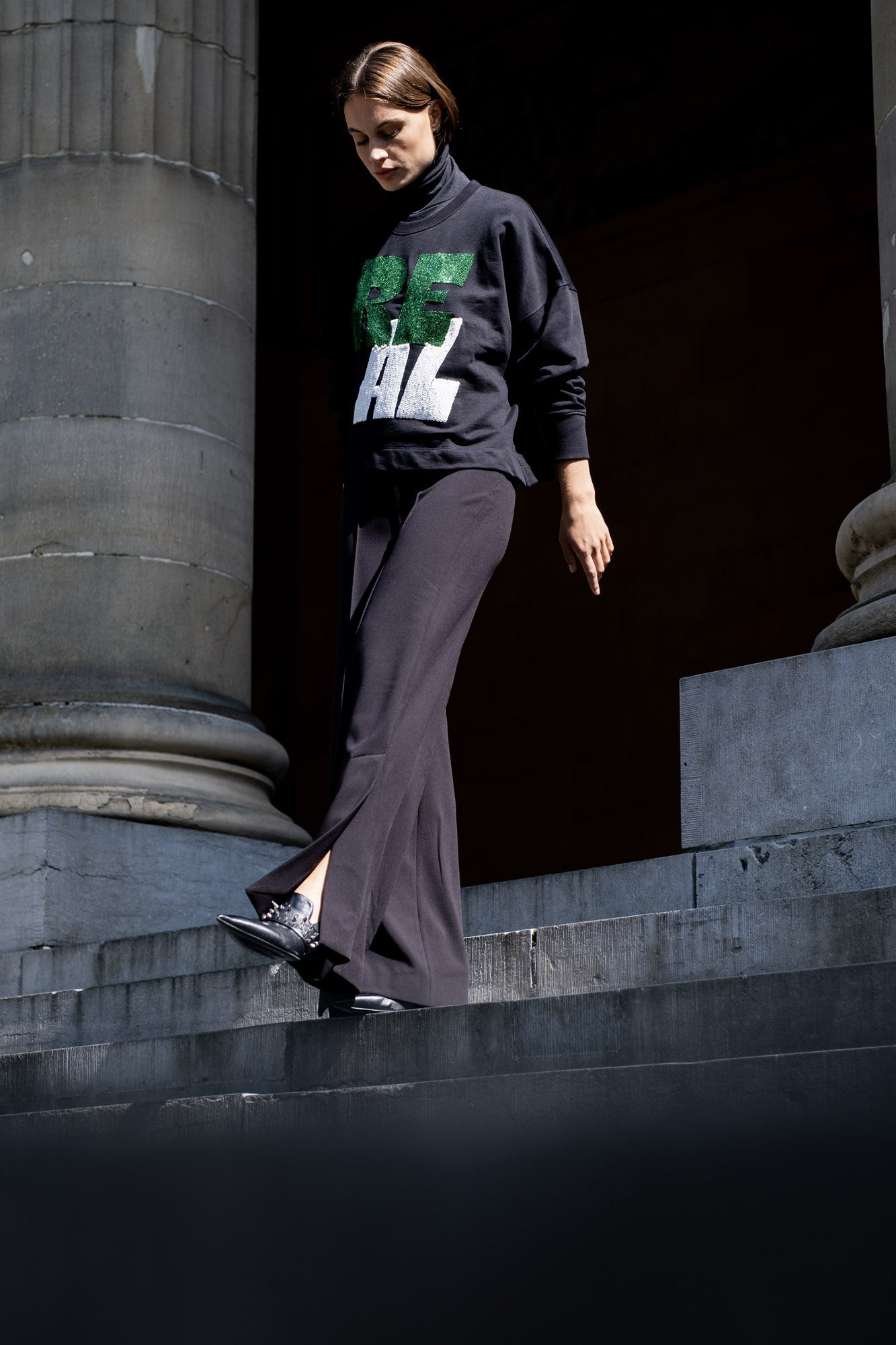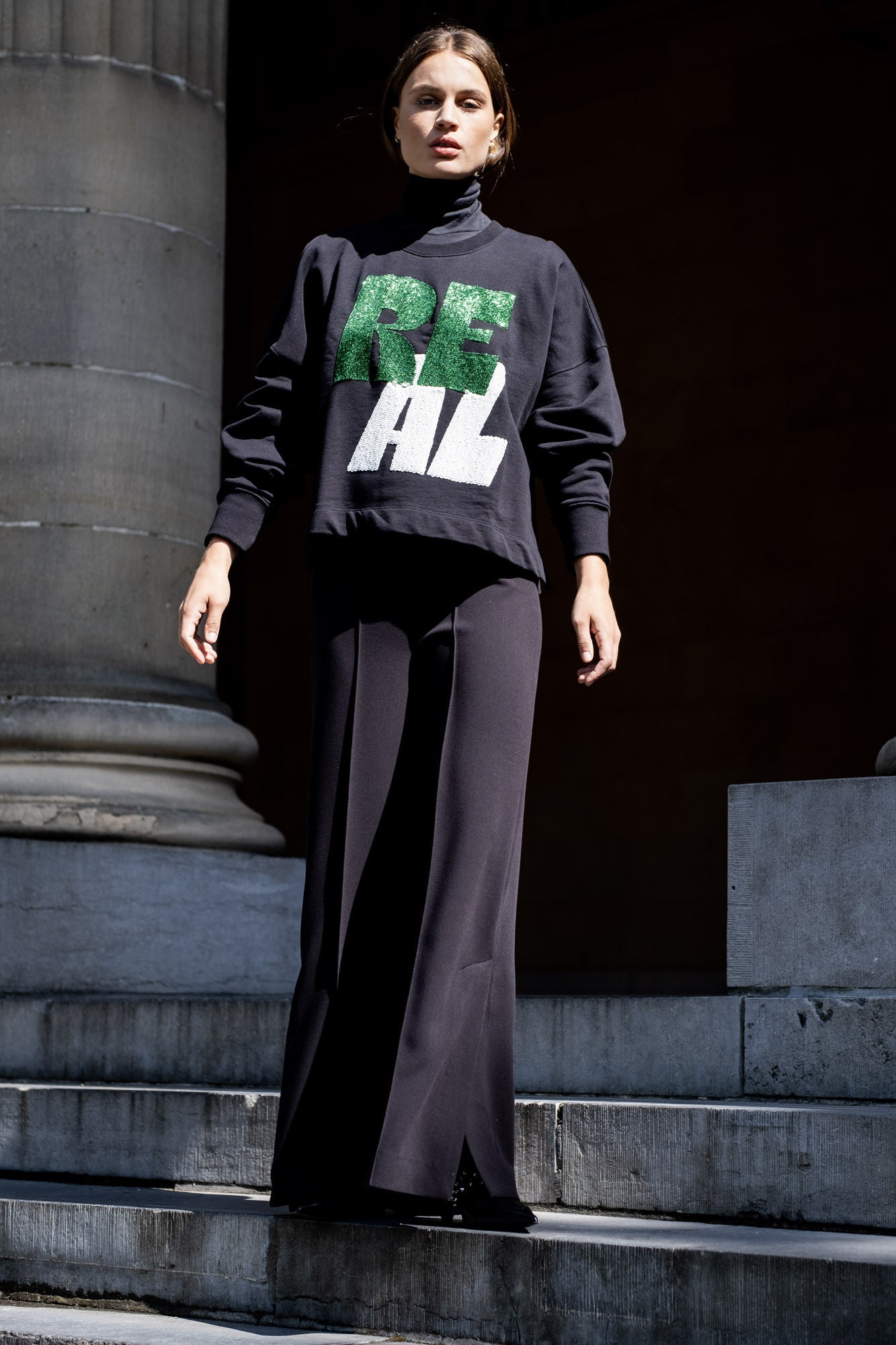 Weite, bodenlange Hosen sind ein schickes Muss in deiner Herbstgarderobe. Elegant und überfeminin, gleichzeitig kannst du diese Hose auch sportlich stylen.