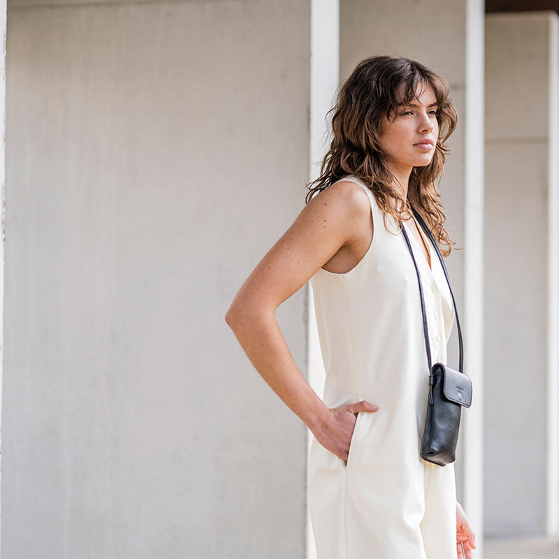 Felicia est une combinaison minimaliste, mais avec une allure surprenante grâce à ses jambes larges et ses détails charmants.