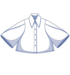 Odyna: Ce chemisier boutonné, court et ample, est doté d'une manche trapèze, avec un pli sur la tête de manche. Tu préfères quelque chose de plus classique ? C'est possible!