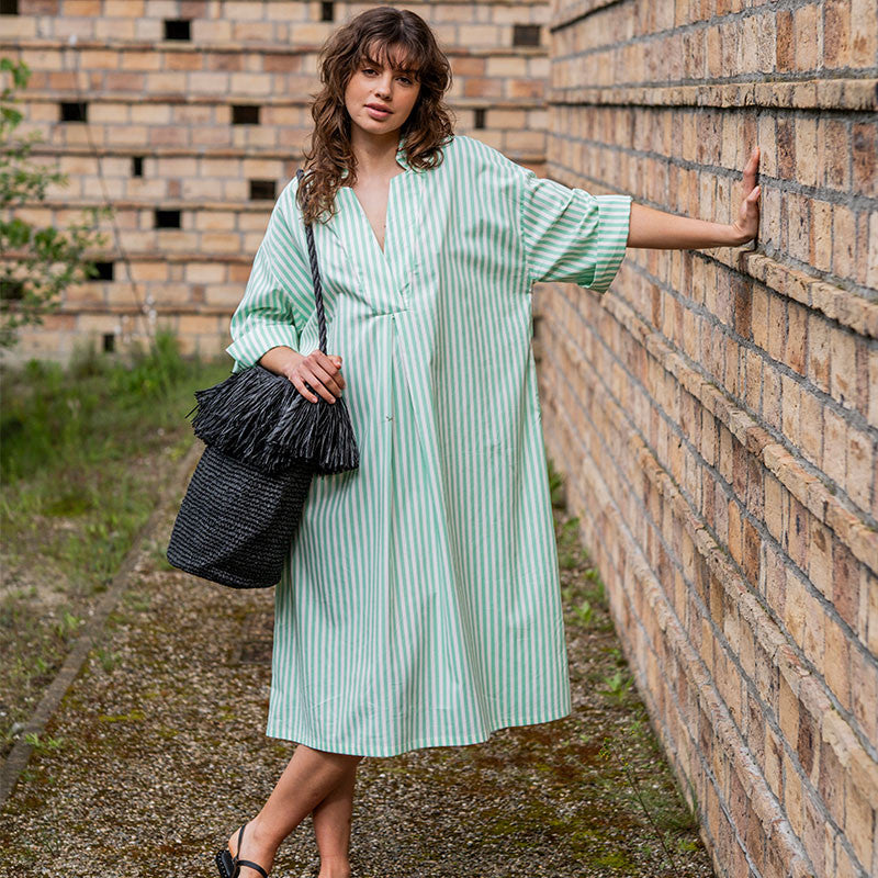 In 1, 2, 3 over naar beach mode met de Christine jurk. De rechte, oversized kaftan-jurk heeft geen sluiting en trek je dus eenvoudig aan boven jouw bikini of badpak.