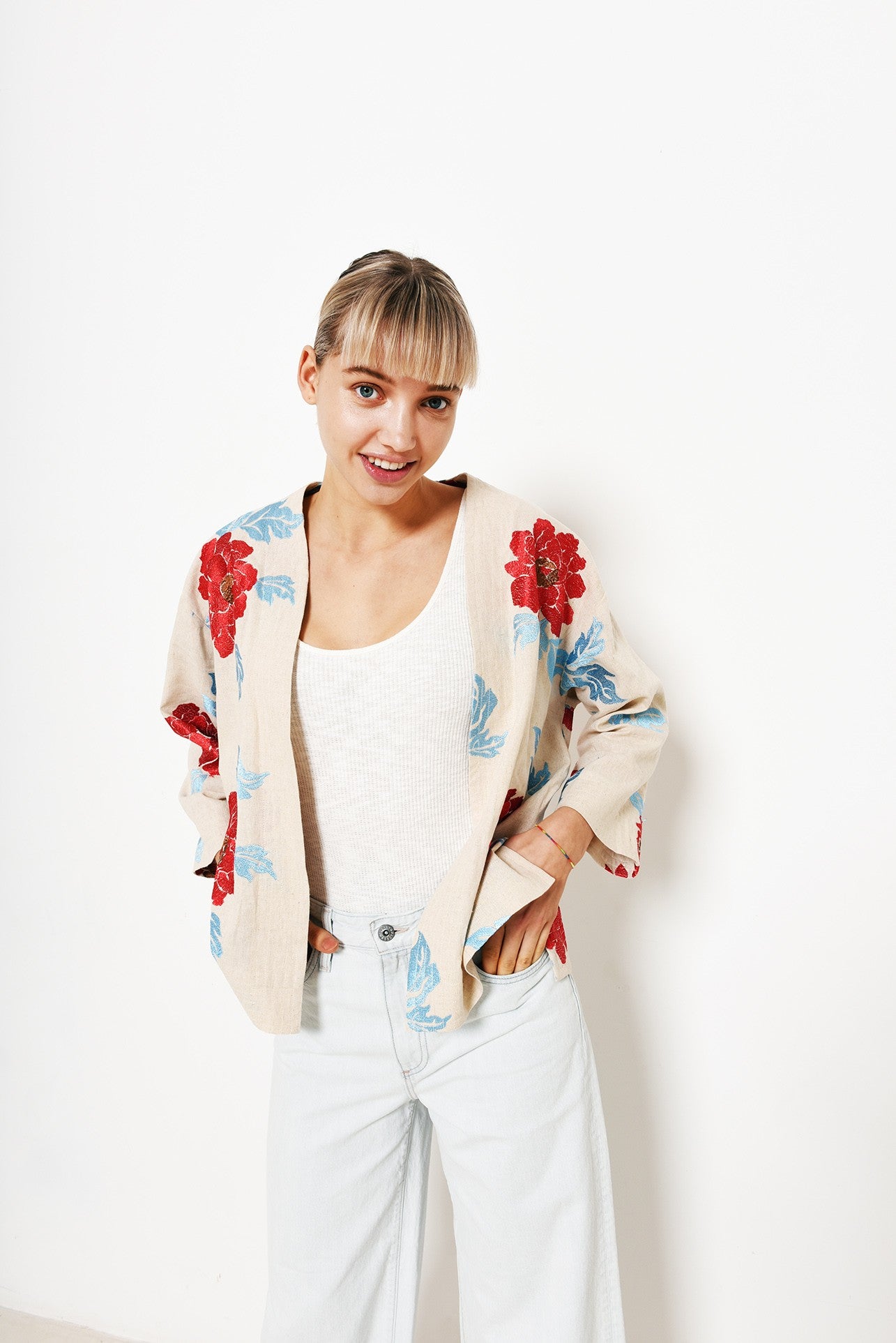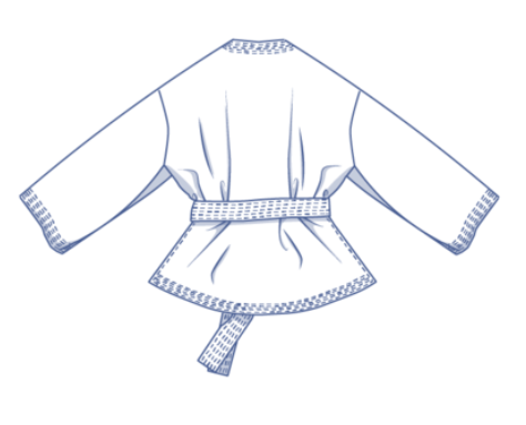 Voor de liefhebbers van unieke items is er de Julia jas. Het is net een trendy karatevest waarbij de halslijn, zoom en riem bestikt zijn met 5 rijen stiksels.