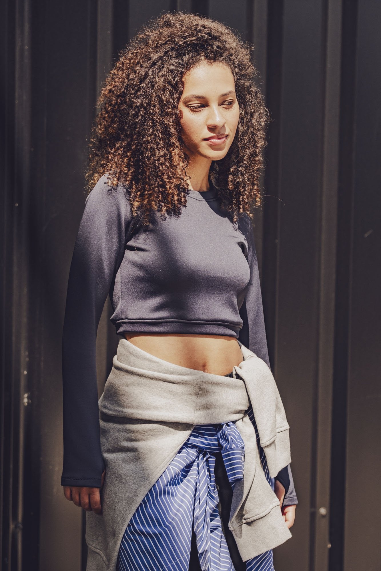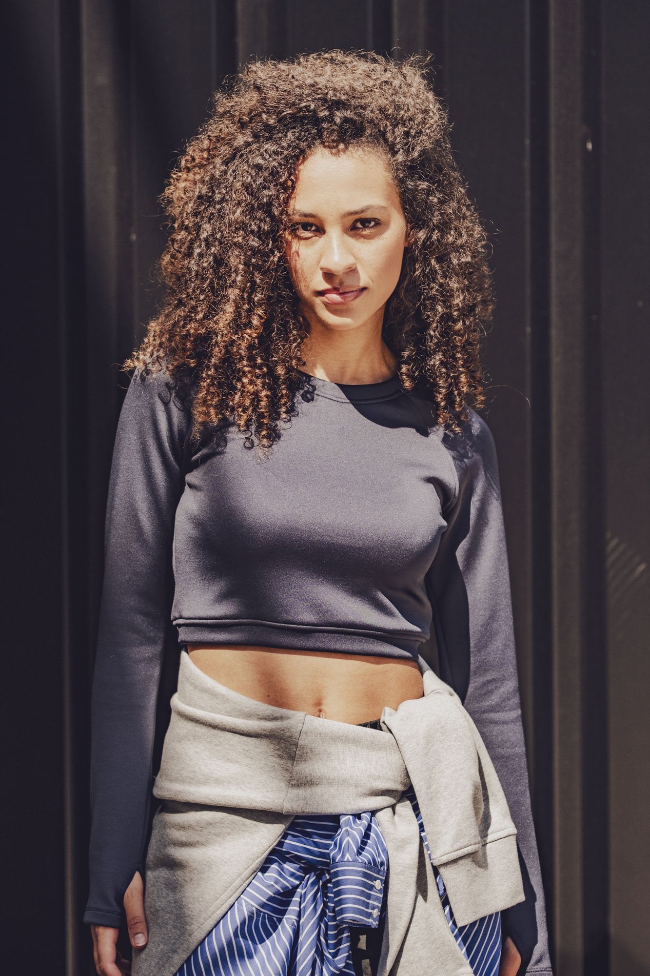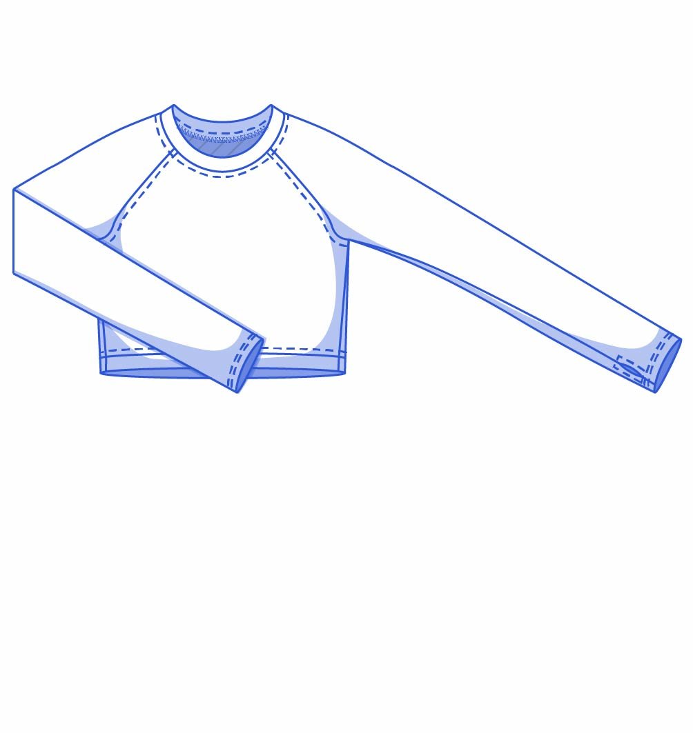 Dymar is a fitted, cropped sports top with a round neckline and raglan sleeves. The neckline is finished with a neck trim, and the hem with a firm band for a nice fit.