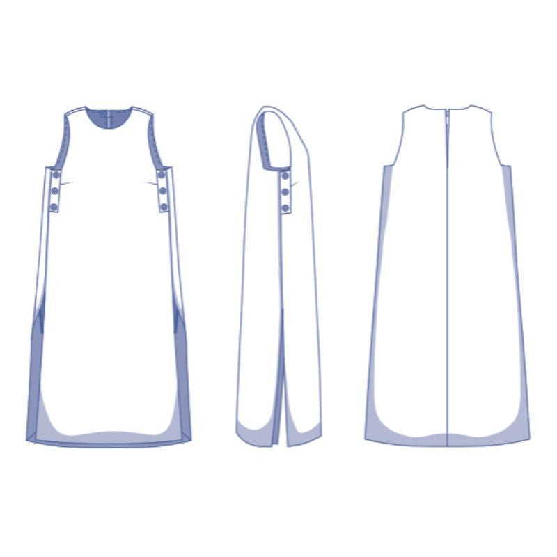 This round-neck dress is a real must-sew. With a subtle bust dart for shaping, side seam overlap and large side slits, Havana is a real eye-catcher.