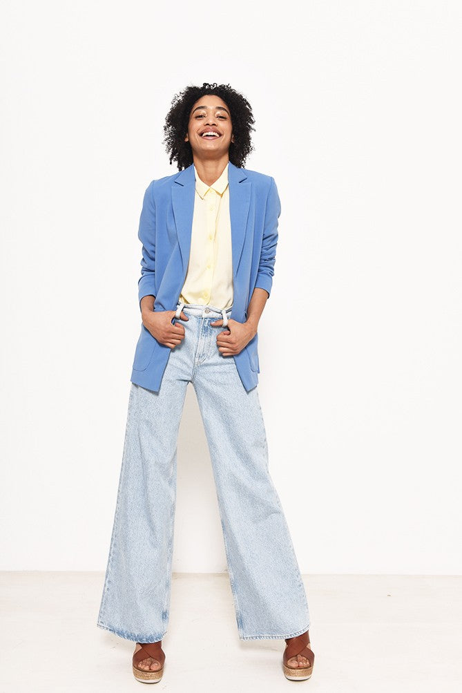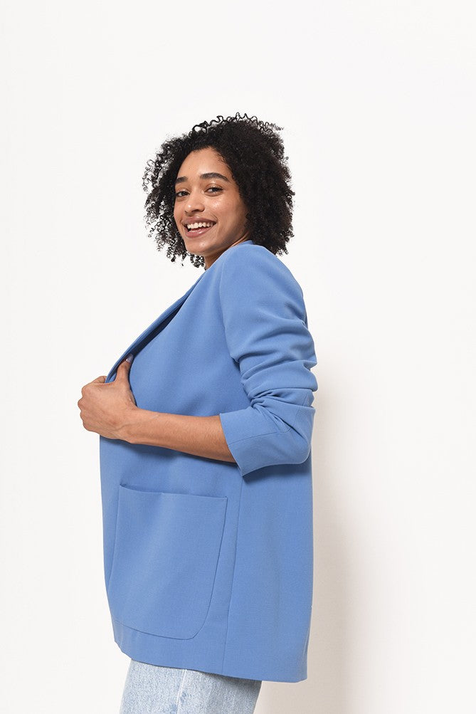 The Kai blazer is fairly loose cut, but can be tightened with a belt to accentuate the waist.
