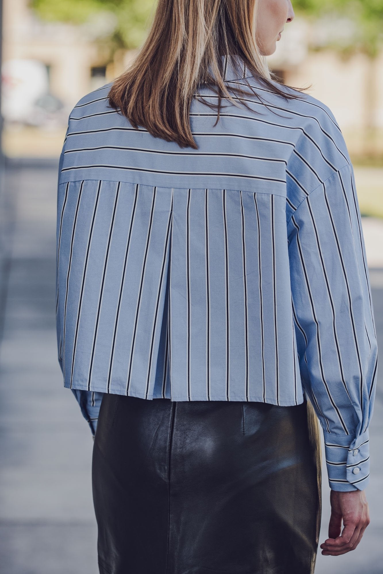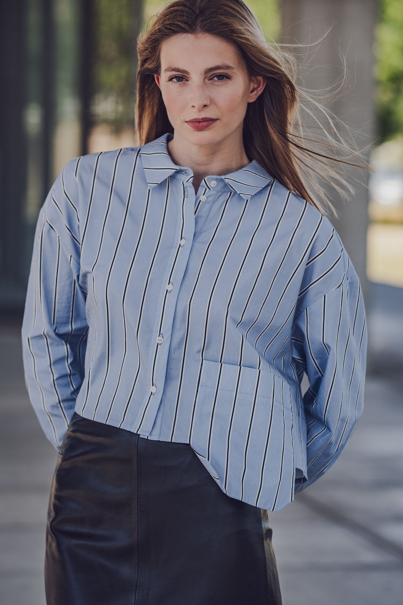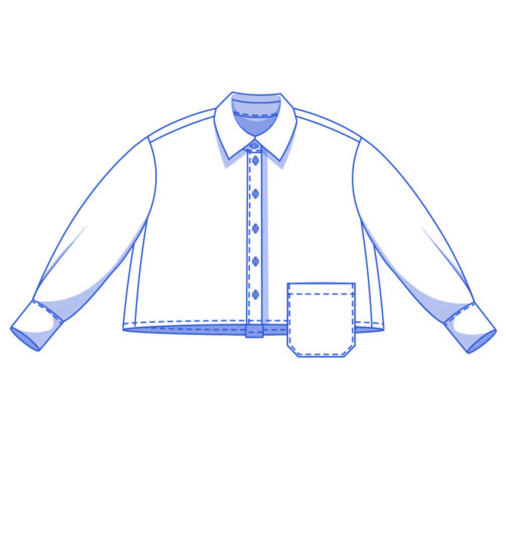 Lydia is a short, fresh variation on Libbie. The chest pocket hangs casually over the straight hem, giving the shirt a casual, cool look.
