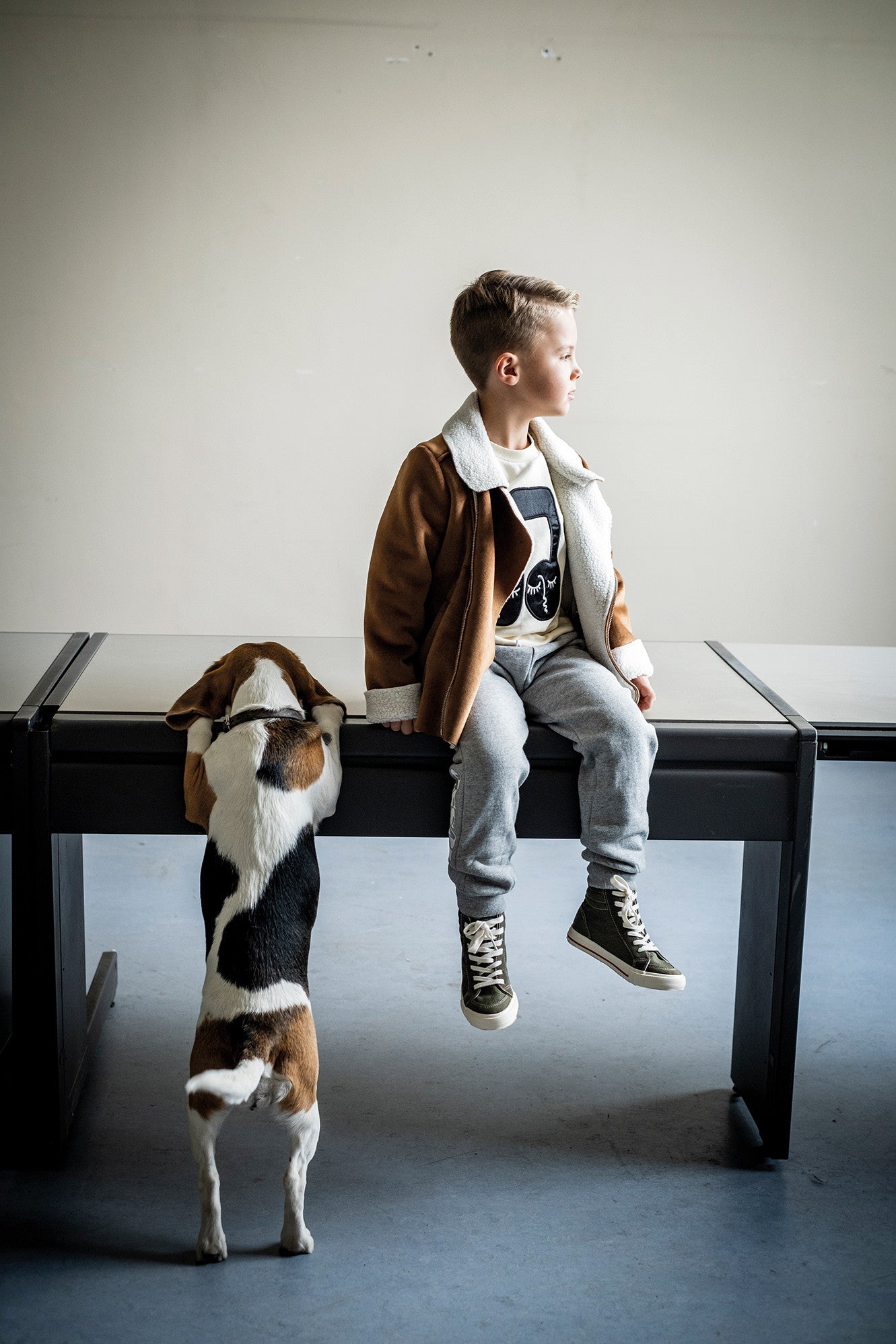 Do I really have to put a coat on? How come? I'm not cold! And then there was Miles...a rough & tumble biker jacket – that is, the cosy winter version.