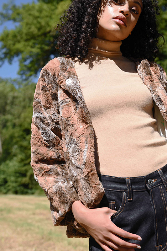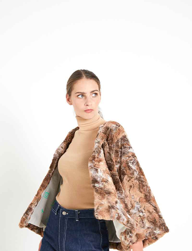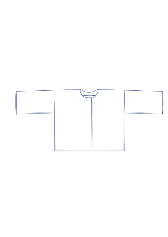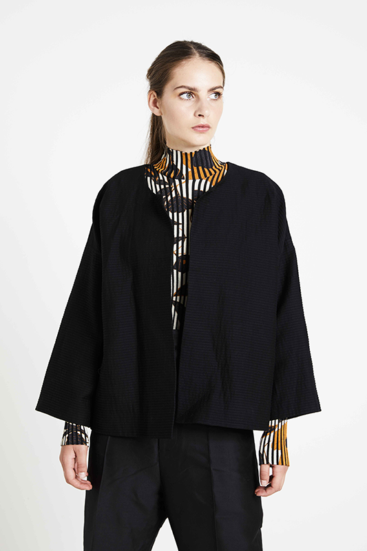 Penny is a short, oversized jacket with wrist-length, wide sleeves. Depending on the fabric used, it can be adapted to the season.